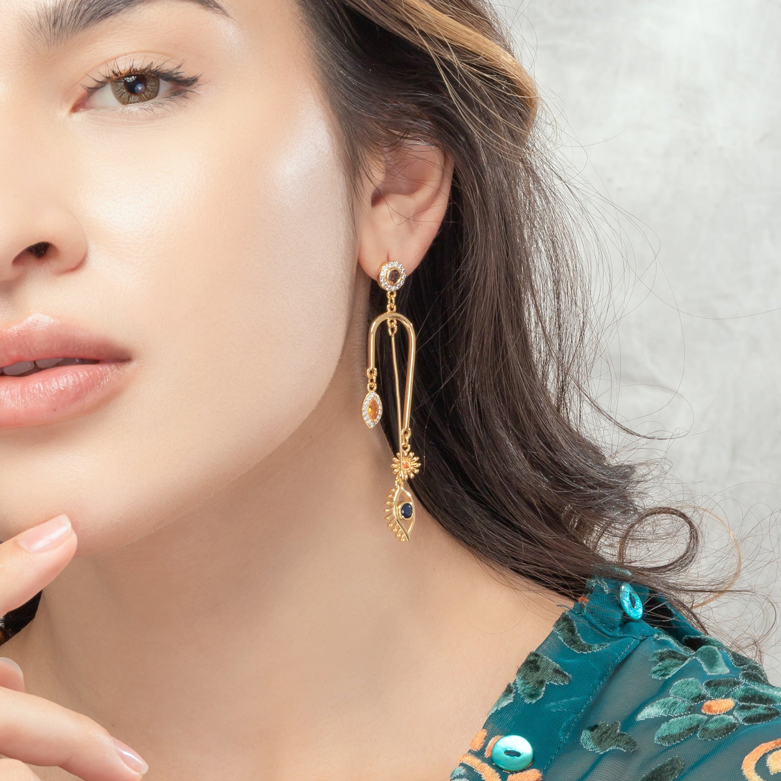 Elevate your look with our Devil Eye Earrings. Handcrafted with intricate detail, these statement pieces are sure to add timeless beauty to any ensemble. An eye-catching gold plating ensures they won’t go unnoticed, while the intricate design offers a sense of sophistication and style. A unique and luxurious accessory to exceed all expectations.