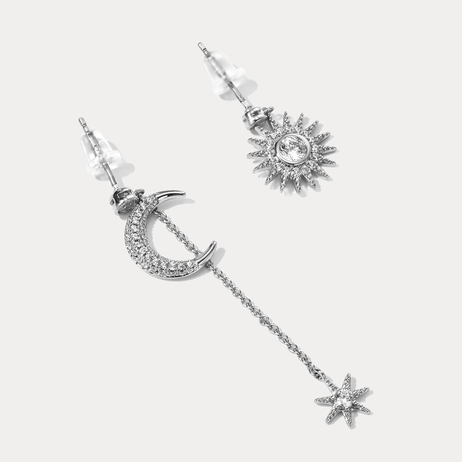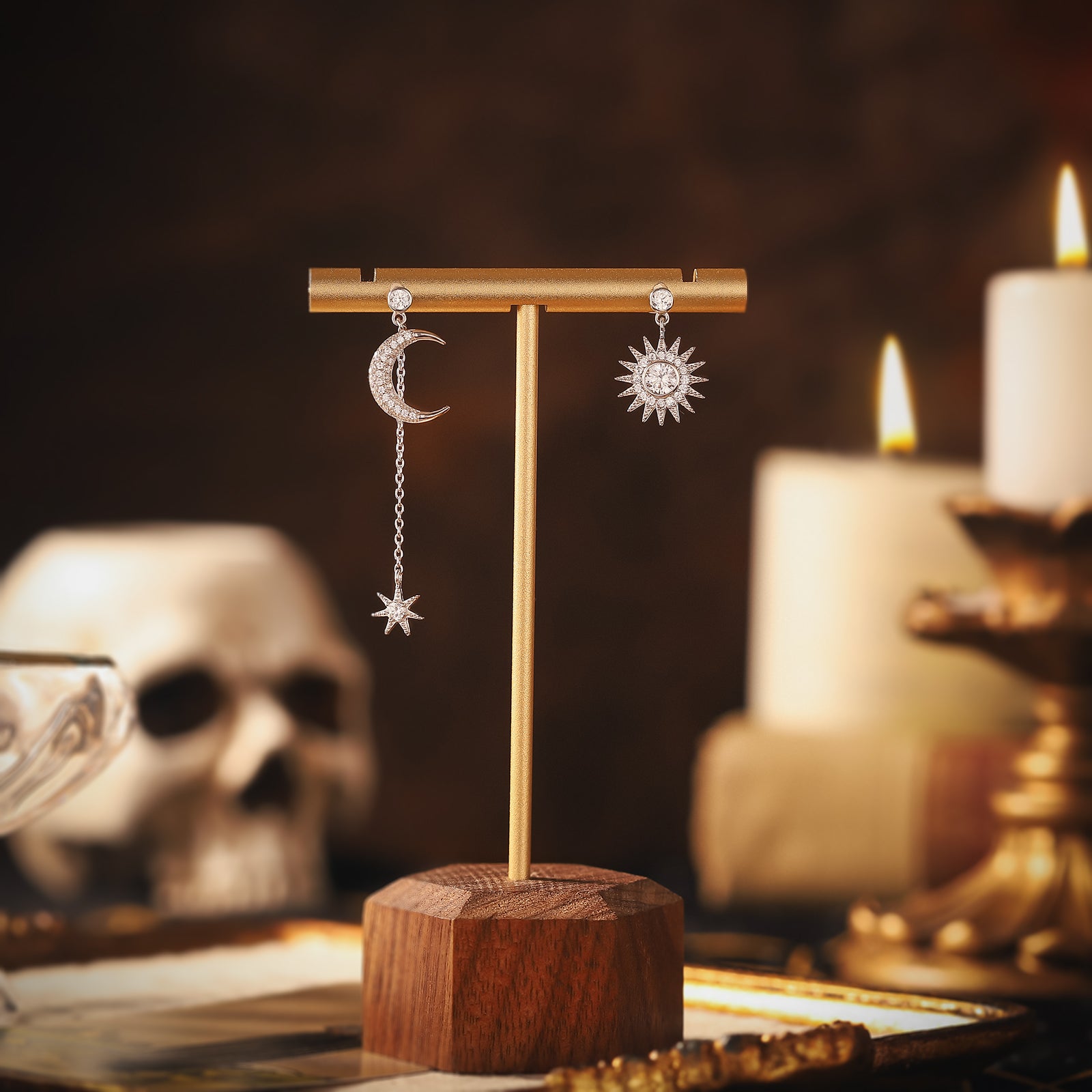 Invite the sun and the moon into your life with these Moon & Sun Earrings. A luxurious and exclusive pair of earrings, this unique design offers a sophisticated and tasteful accessory to its wearer. Handcrafted with exquisite detail, these earrings will add a subtle shine to brighten any day.