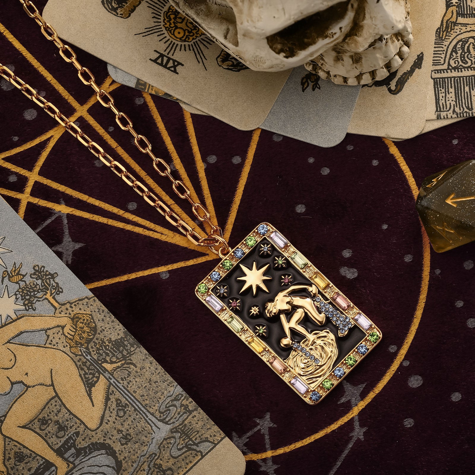 Lift your look to the stars with The Star Tarot Necklace, crafted with beautiful brass enamel, perfect for that special someone in your life! Show off your passion for astrology with this modern piece of jewelry that fuses classic style and modern flair. Whether for yourself or a loved one, give the gift of good luck with The Star Tarot Necklace.